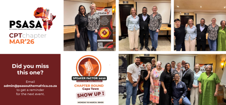 The Cape Chapter is looking at those 10 and decided to make each one of those 10 an educational slot. At each meeting we’re going to look at a different aspect of the business of speaking.